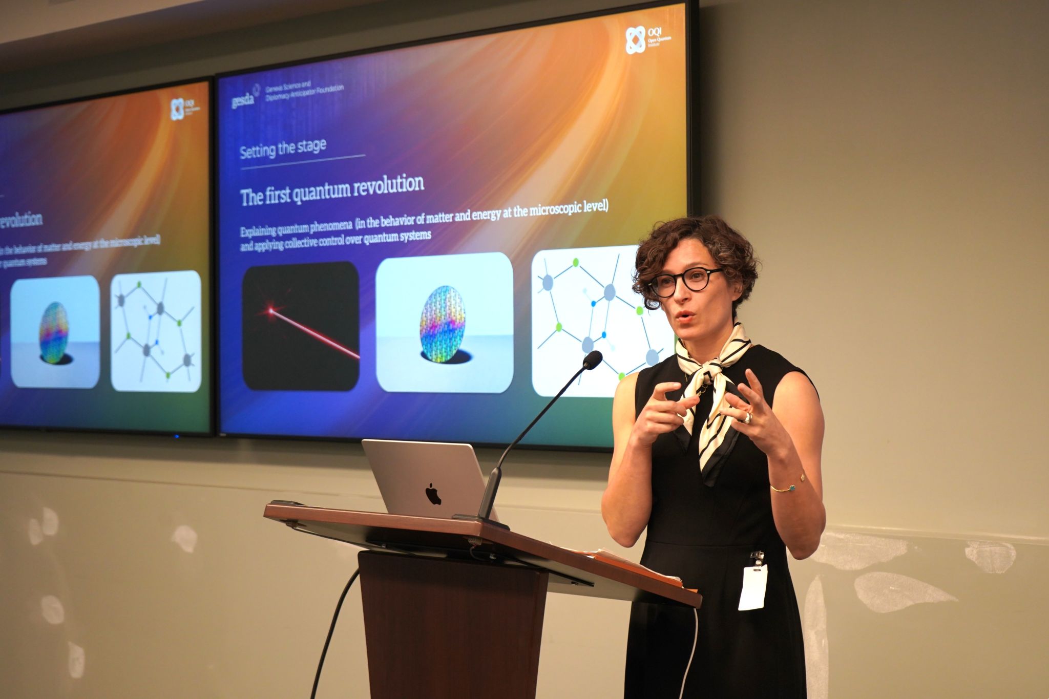 Following the Quantum Diplomacy Game, Marieke Hood (OQI Advisory Committee Co-Chair) and Catherine Lefebvre (Applications Lead and Senior Advisor at OQI) presented OQI’s methodology for developing quantum computing use cases aiming to accelerate the achievement of the UN Sustainable Development Goals (SDGs).