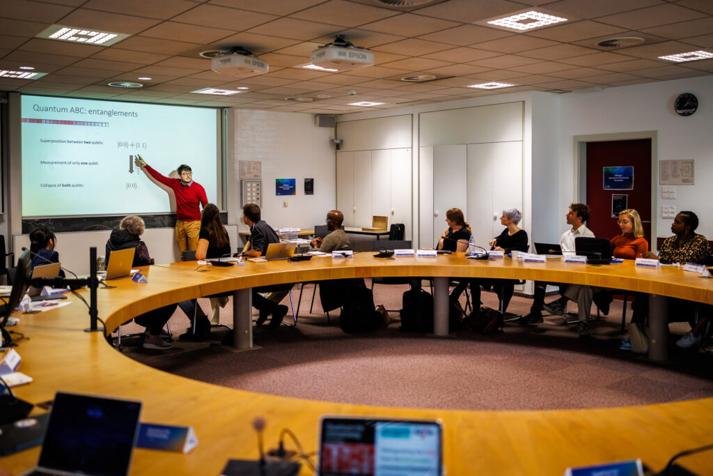 Pierre Fromholz (University of Basel) set the stage, distinguishing between realistic and over-hyped expectations of quantum computing and how to redirect focus towards the tangible potential of the technology. Tiff Brydges (UNIGE) explored the feasibility of the quantum internet and its impact on global connectivity. The role of quantum education and the importance of preparing the next generation for the technology was outlined by Adrian Schmidt (Karlsruhe Institute of Technology), followed by an exploration of the ethical and practical considerations of quantum advancements by Eline de Jong (University of Amsterdam).